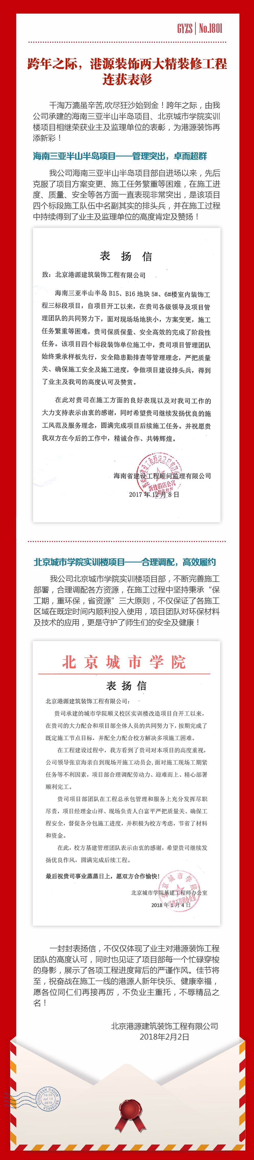 跨年之際,港源裝飾兩大精裝修工程連獲表彰!