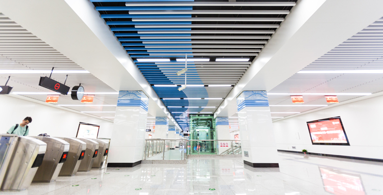 在施工過(guò)程中,港源裝飾綜合考慮站點(diǎn)內的實(shí)用功能及藝術(shù)效果,將裝飾材料、施工工藝與總體設計原則有機結合,在既定時(shí)間內為蘭州市民呈現出了一個(gè)清新雅致、底蘊深厚的蘭州軌道交通1號線(xiàn)。