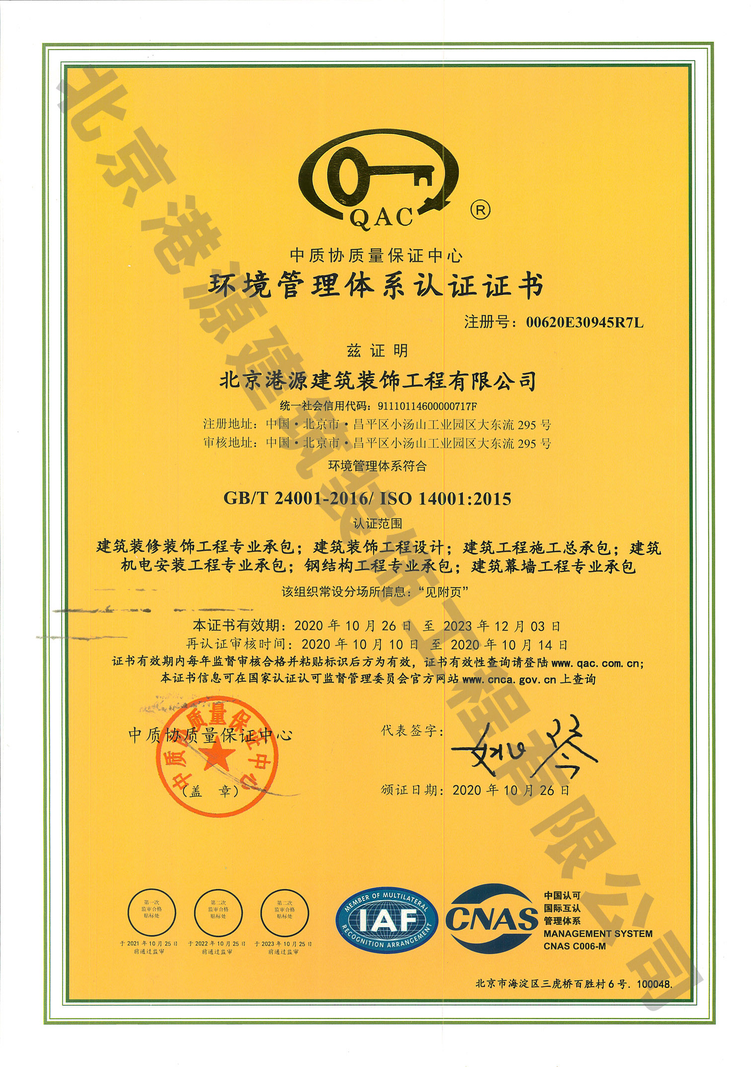 環(huán)境管理體系認證證書(shū)