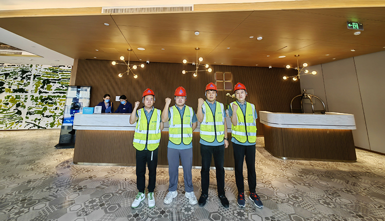 港源裝飾項目管理團隊由一批施工經(jīng)驗豐富的管理人員組成。在項目開(kāi)工初期,團隊便根據工程實(shí)際情況,針對項目的重難點(diǎn)及關(guān)鍵節點(diǎn)進(jìn)行了梳理及分析,對重點(diǎn)區域及技術(shù)難點(diǎn)做出了專(zhuān)項施工方案,對本工程的所有節點(diǎn)收口進(jìn)行全員梳理及專(zhuān)業(yè)深化,對關(guān)鍵節點(diǎn)提前理清工作面技術(shù)方案,科學(xué)組織人力物力,對可能發(fā)生的例外情況進(jìn)行提前預判及防范,并且依次編制了