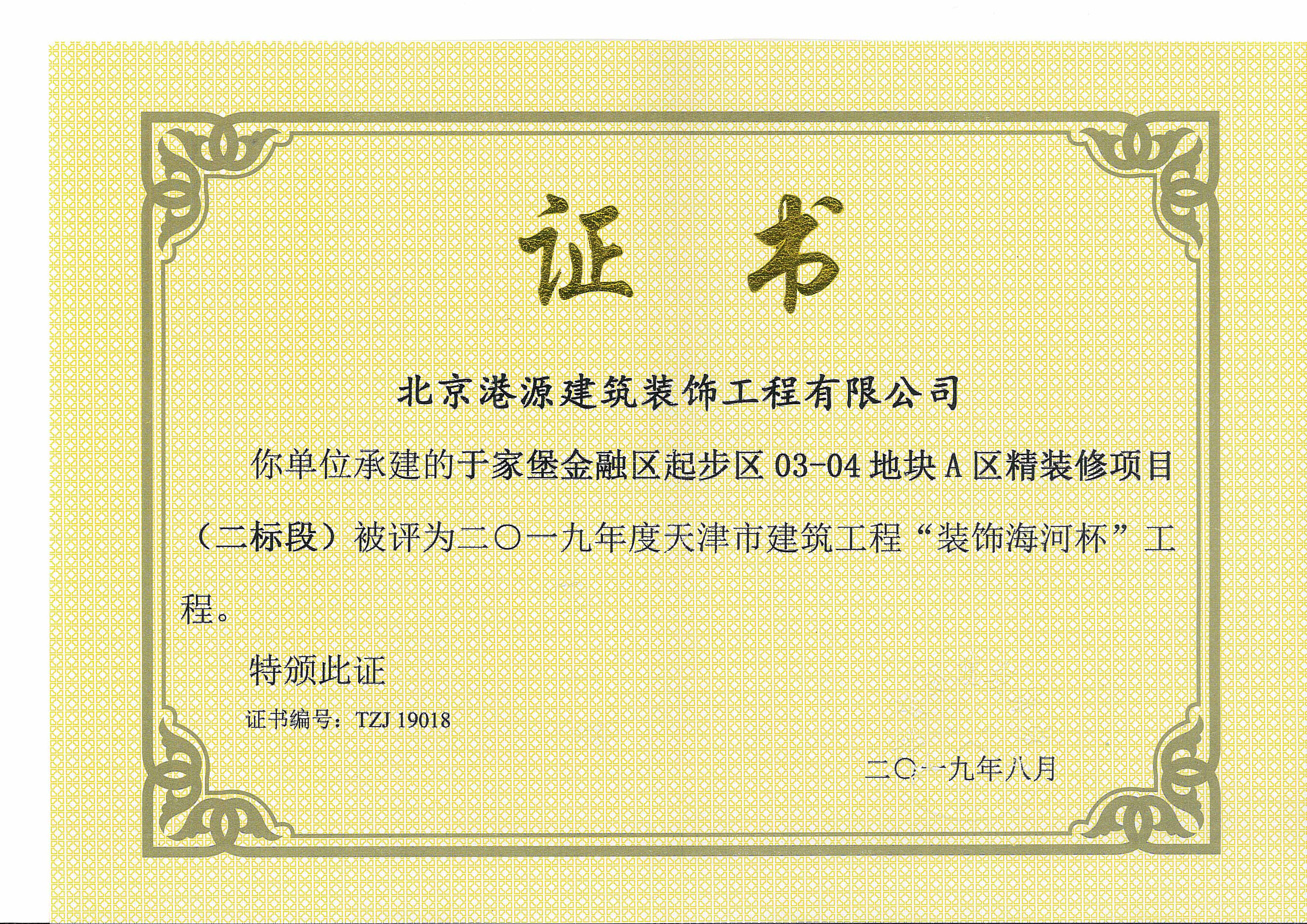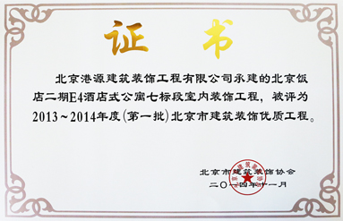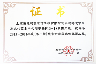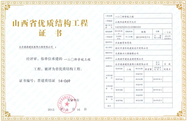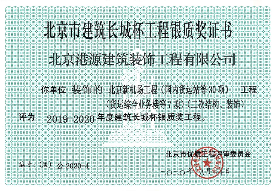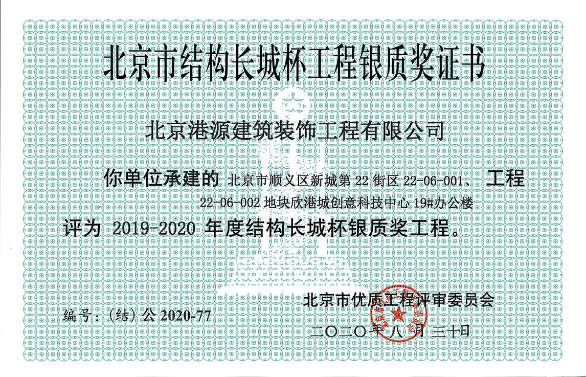 北京市結構長(cháng)城杯工程銀質(zhì)獎證書(shū)